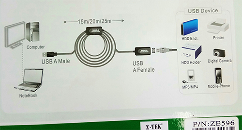 ZE596 USB 2.0 AM-AF Cable 15M ยี่ห้อ Z-TEK