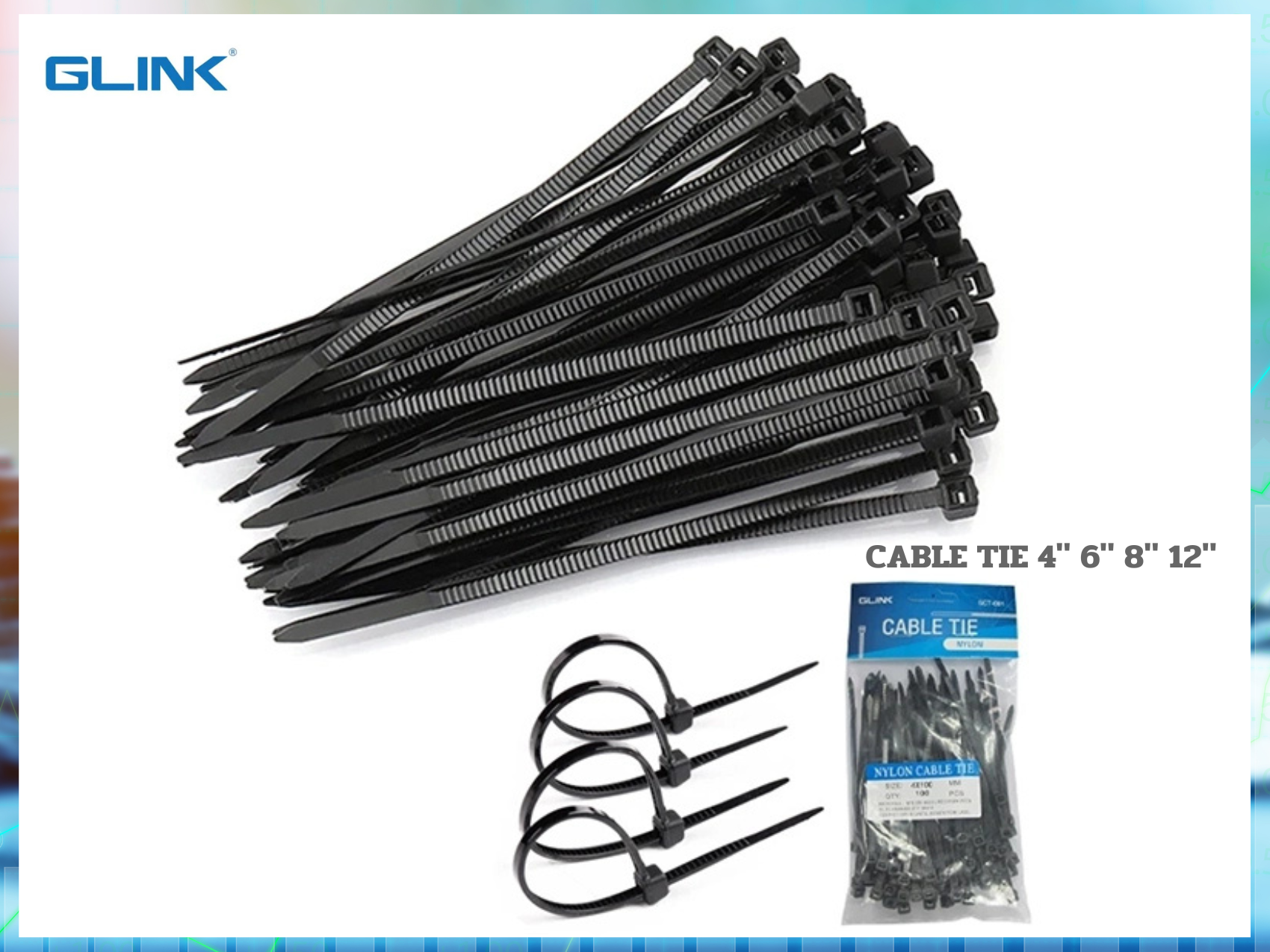 glink gct-02b-cable-tie-ยาว-6นิ้ว-สีดำ-แพ็ค-100ชิ้น