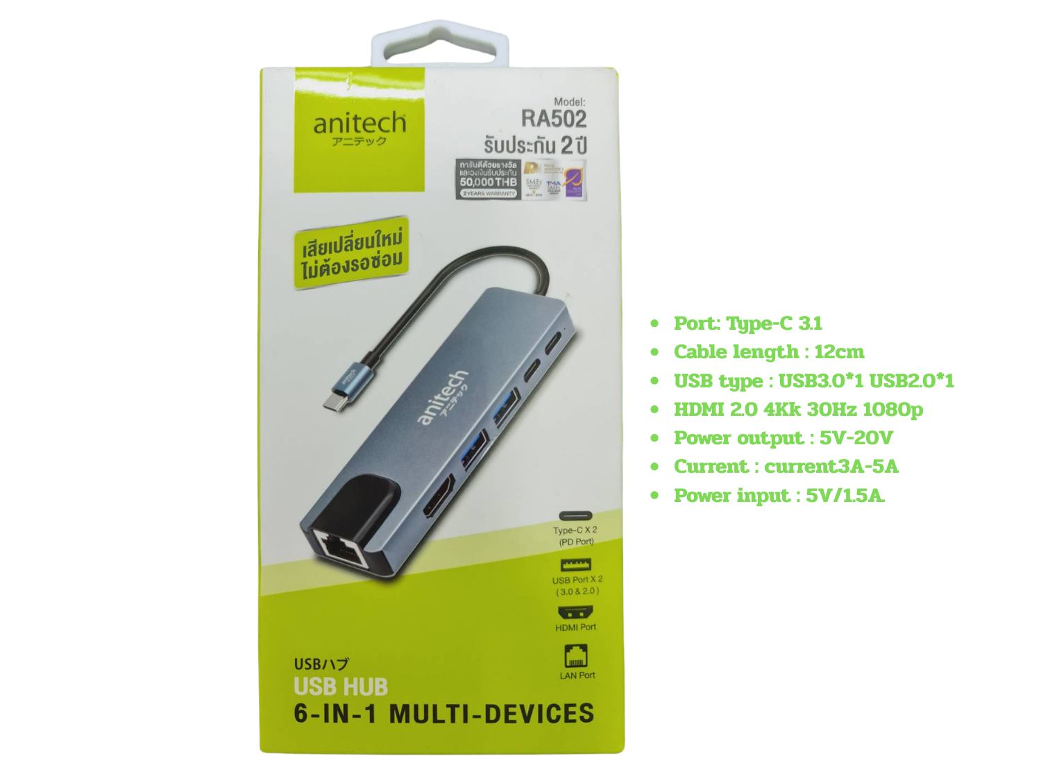 anitech USB TYPE-C 6-IN-1 MULTI-DEVICES
