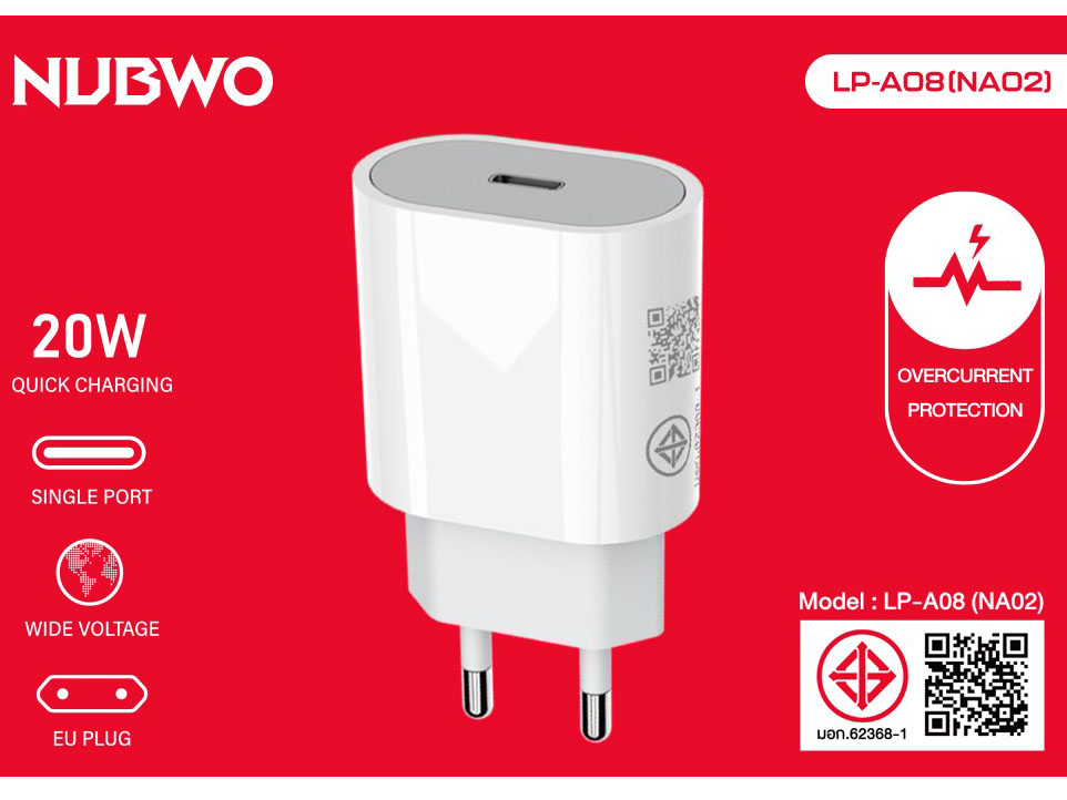 NUBWO LP-A08(NA02) ADAPTER TYPE-C ชาร์จมือถือ มี มอก.62368-1