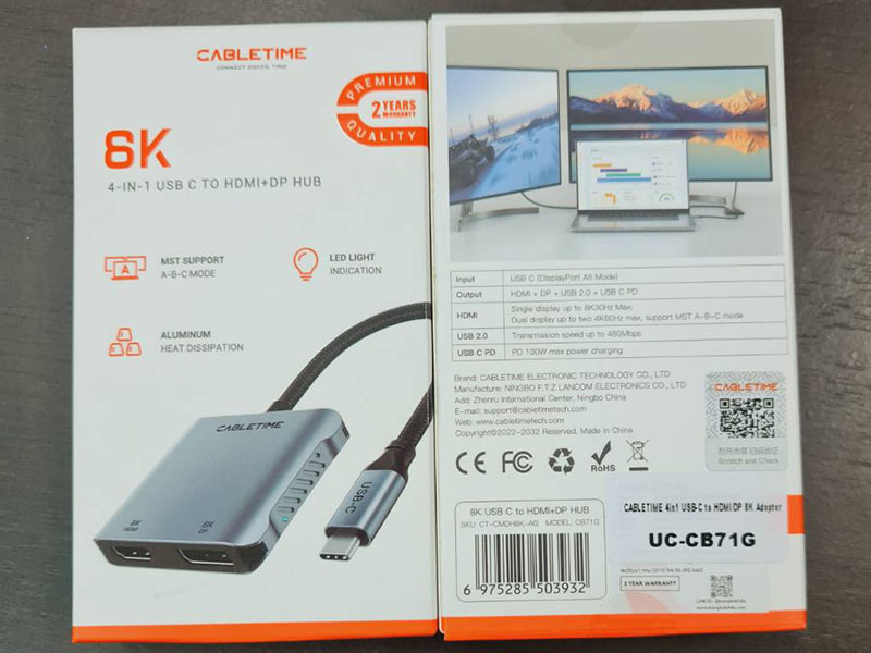 8K30Hz HDMI + 8K30Hz DP + USB 2.0 + PD 100W
